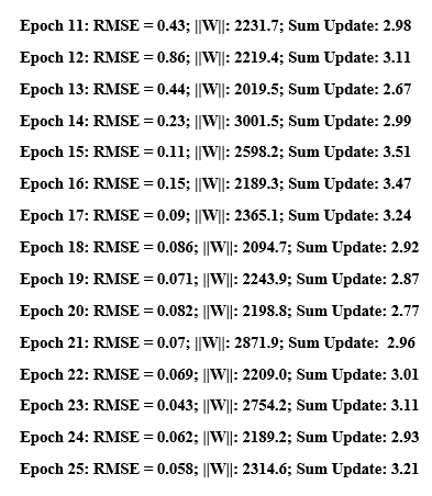 RBMs in use for this problem. Note the error rates, sum updates and weights of the model in training.