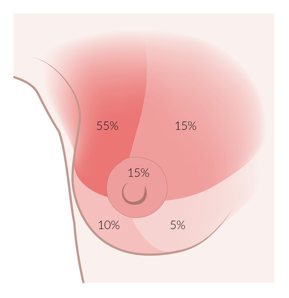 - Breast: 2.9 cm round mass in the upper-outer quadrant