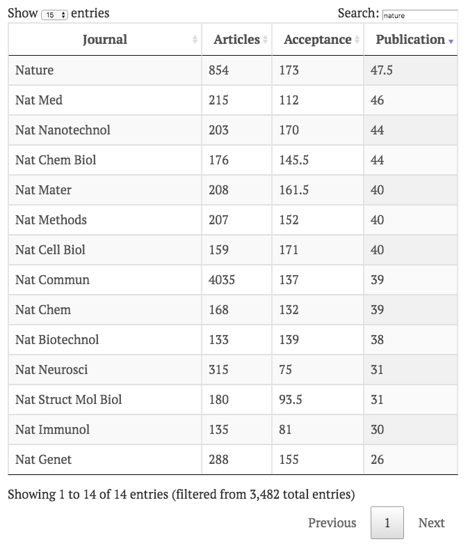 Are publication delays getting shorter or longer? Kendall Powell, writing a feature for Nature News, contacted me. Her investigation had uncovered a widespread belief that delays were worsening with time. But she wanted data, and the existing data was field specific or anecdotal.