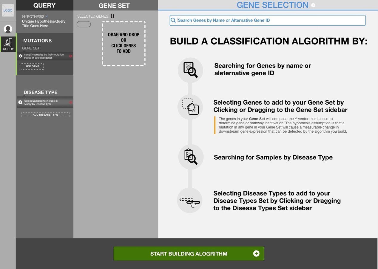 Our product is cognoma.org, a webapp that makes it easy to build mutation status classifiers from gene expression on 7,306 TCGA samples representing 33 cancer types. The publicly available dataset contains RNA-seq gene expression for 20,530 genes, non-silent mutation calls for 21,940 genes, and sample attributes such as the patient's disease, age, sex, and survival. Cognoma enables a cancer biologist to assign each sample a mutation status based on one or more selected genes. Next, a disciplined classifier is trained using gene expression and sample attributes as features. As output, the user receives the importance of each feature—offering insight into the molecular effects of their chosen mutation—as well as a mutation scores for samples—which potentially identify hidden responders to targeted pharmacotherapies.