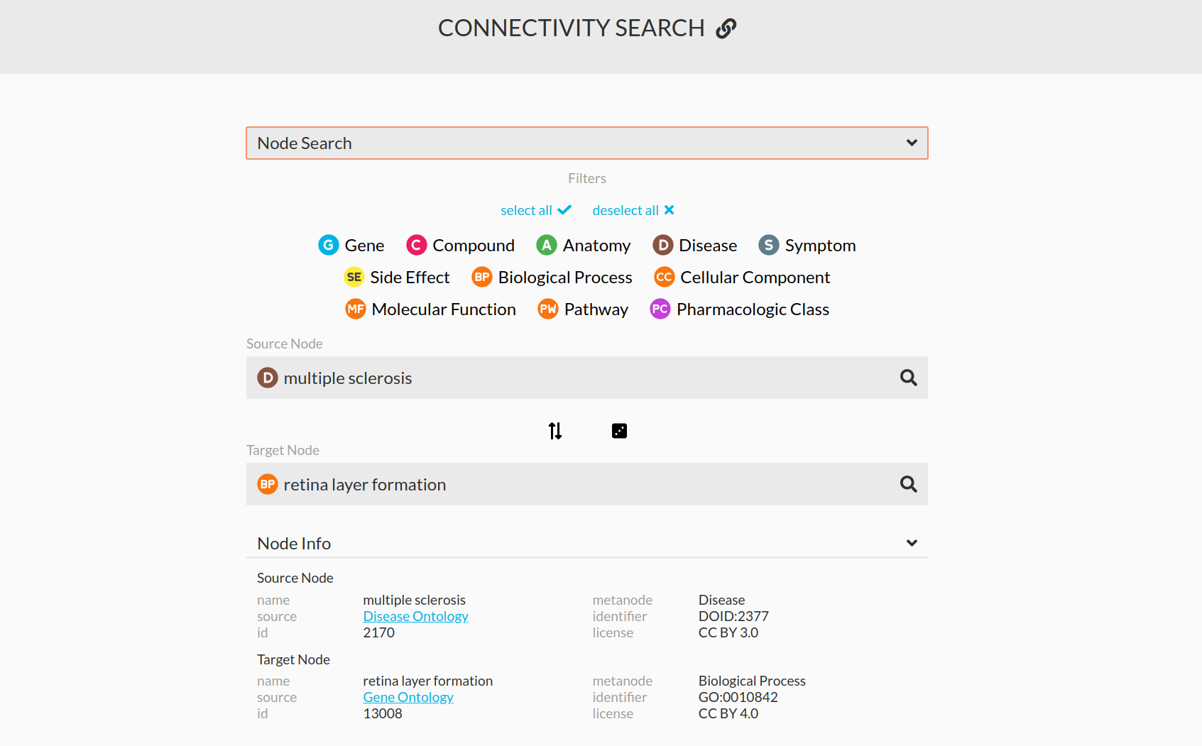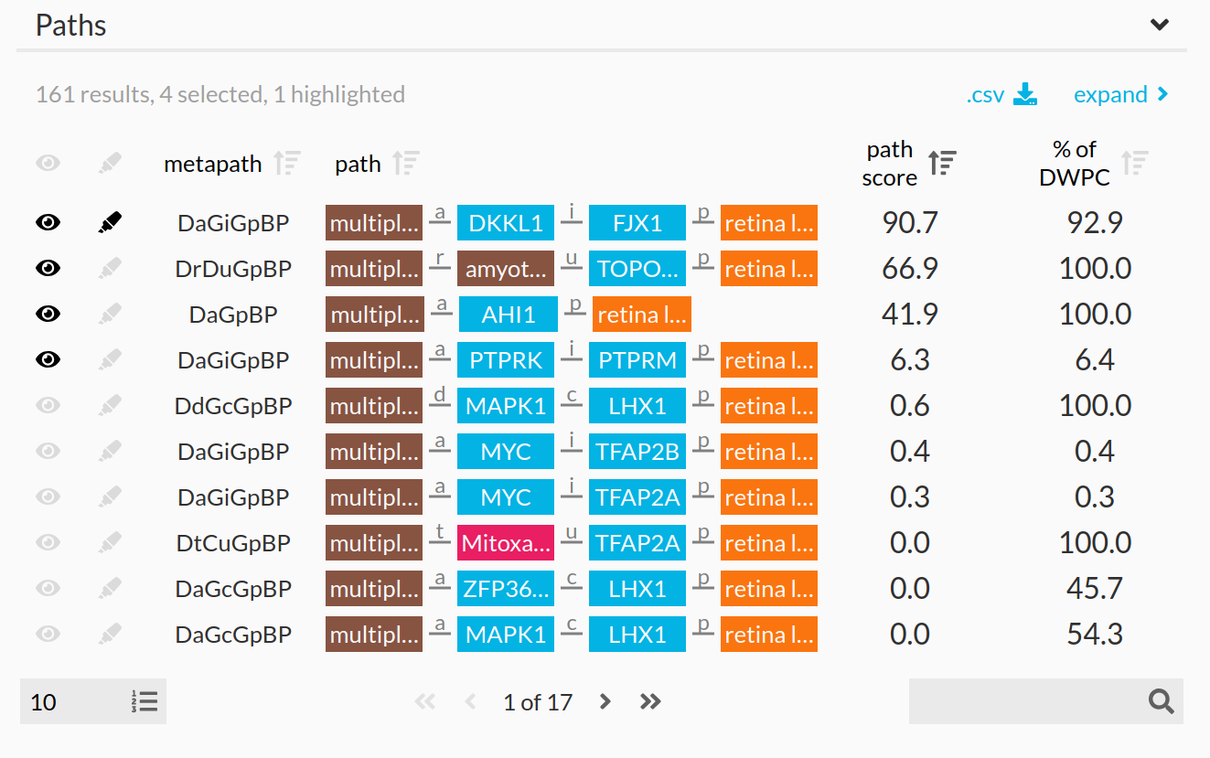 For many applications however, a training set of known relationships does not exist; Yet researchers would still like to know how two nodes are meaningfully connected. For example, users may want to know not only how metformin is related to breast cancer, but also how the GJA1 gene might be involved in insomnia. Therefore, we developed hetnet connectivity search to propose the most important paths between any two nodes.