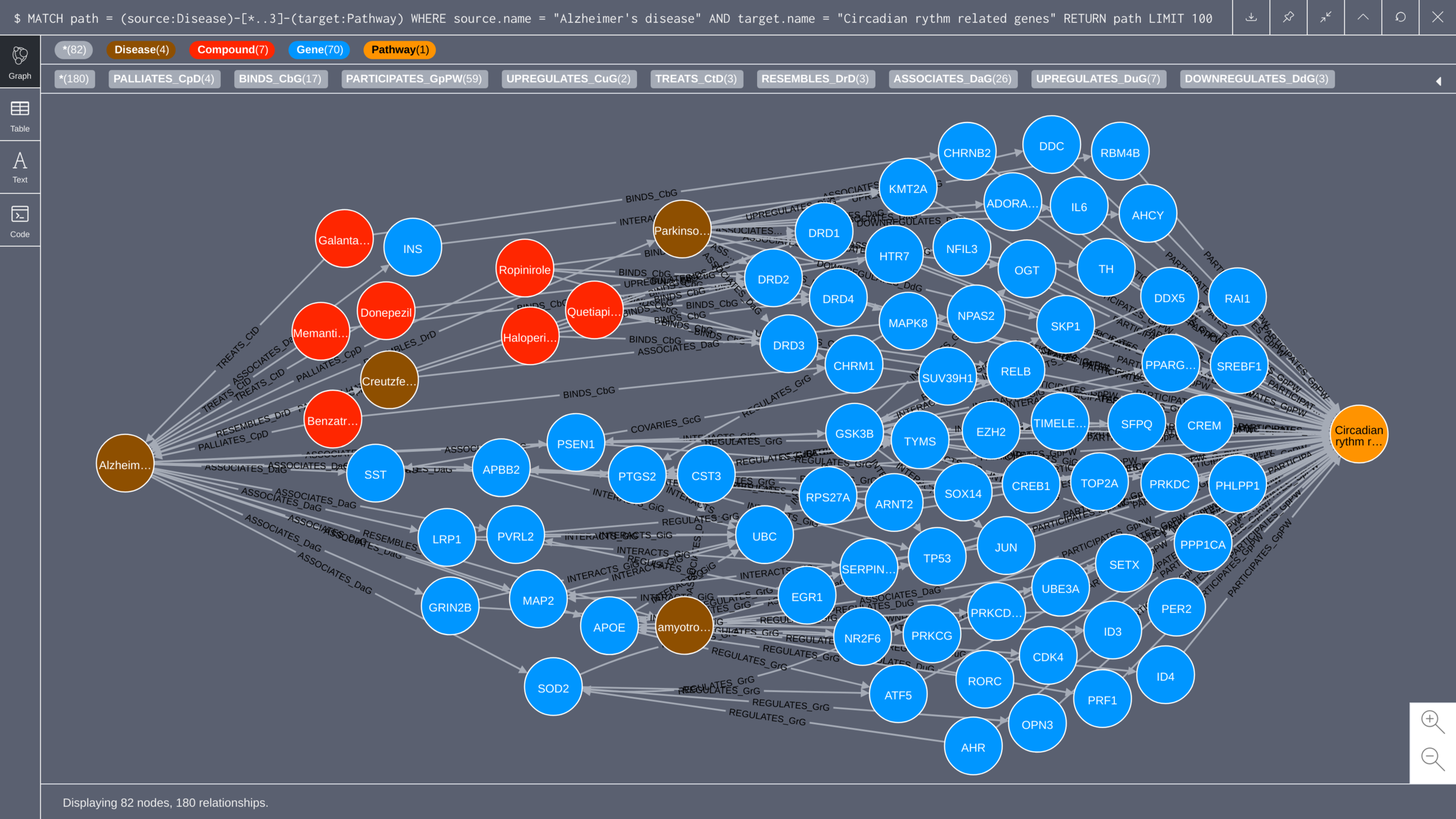 MATCH path = (source:Disease)-[*..3]-(target:Pathway)
