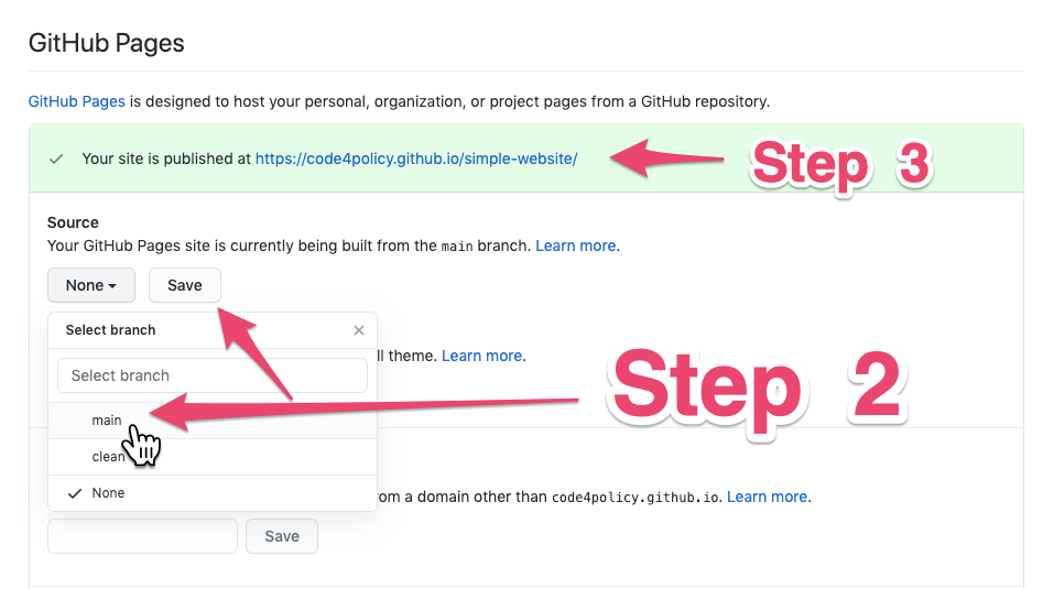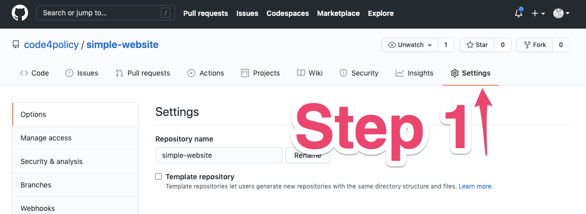 1. Go to your fork of the class site: github.com/your-username/simple-website