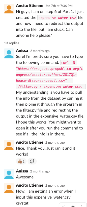 This class gave me more confidence to pursue possible jobs in being a bridge between technology teams and social service delivery. It also sparked my interest in mastering some skills in the course we didn't get to practice but seem valuable, like scraping for data or utilizing and API.