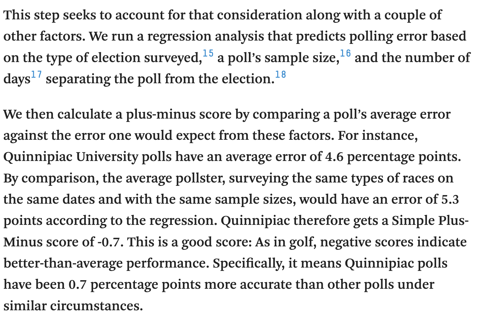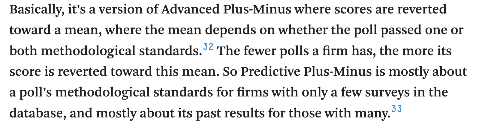 Accounts for other markers of quality like methodological standards (NCPP/AAPOR/Roper membership) and whether or not they call cell phones
