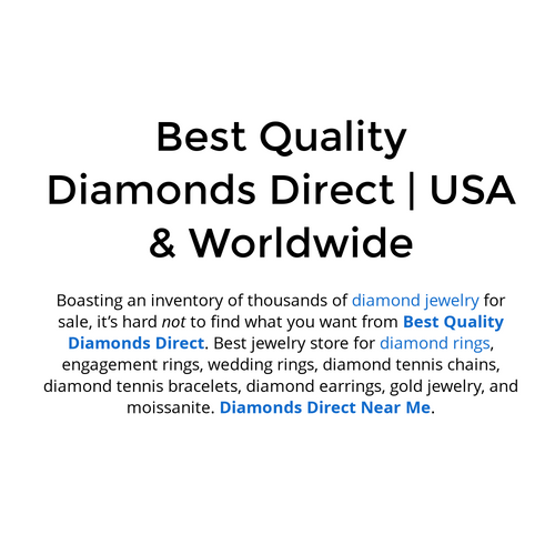 Boasting an inventory of thousands of diamond jewelry for sale, it’s hard not to find what you want from Best Quality Diamonds Direct. Best jewelry store for diamond rings, engagement rings, wedding rings, diamond tennis chains, diamond tennis bracelets, diamond earrings, gold jewelry, and moissanite. Diamonds Direct Near Me.