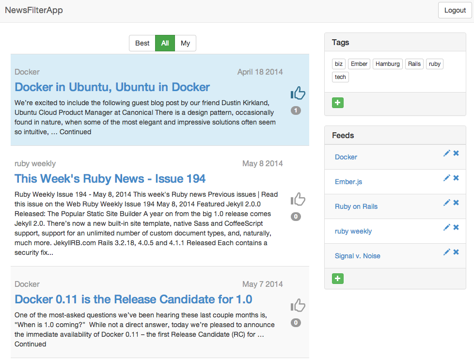 - Show best articles and articles from own feeds