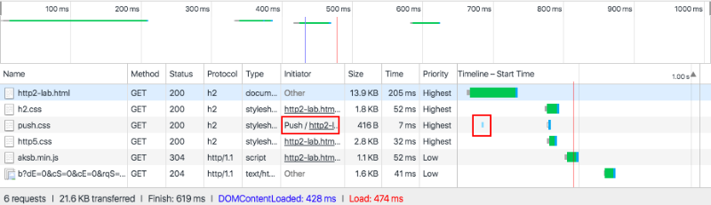 No HTTP 2, o server push manda o response dos recursos antes mesmo deles terem sido requeridos. Veja abaixo: