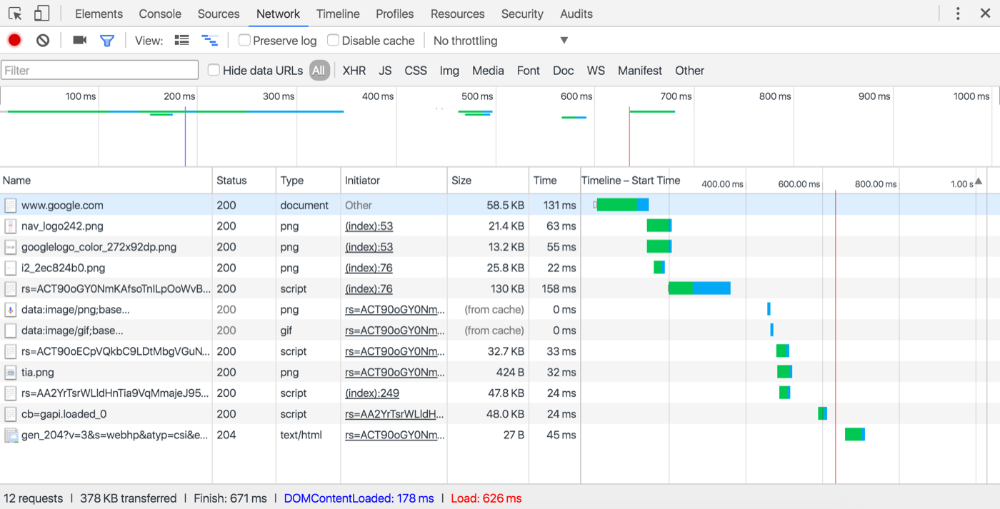 Fast Overview - Chrome Devtools - Network (Controls, Filters, Overview, Request Table, Summary)