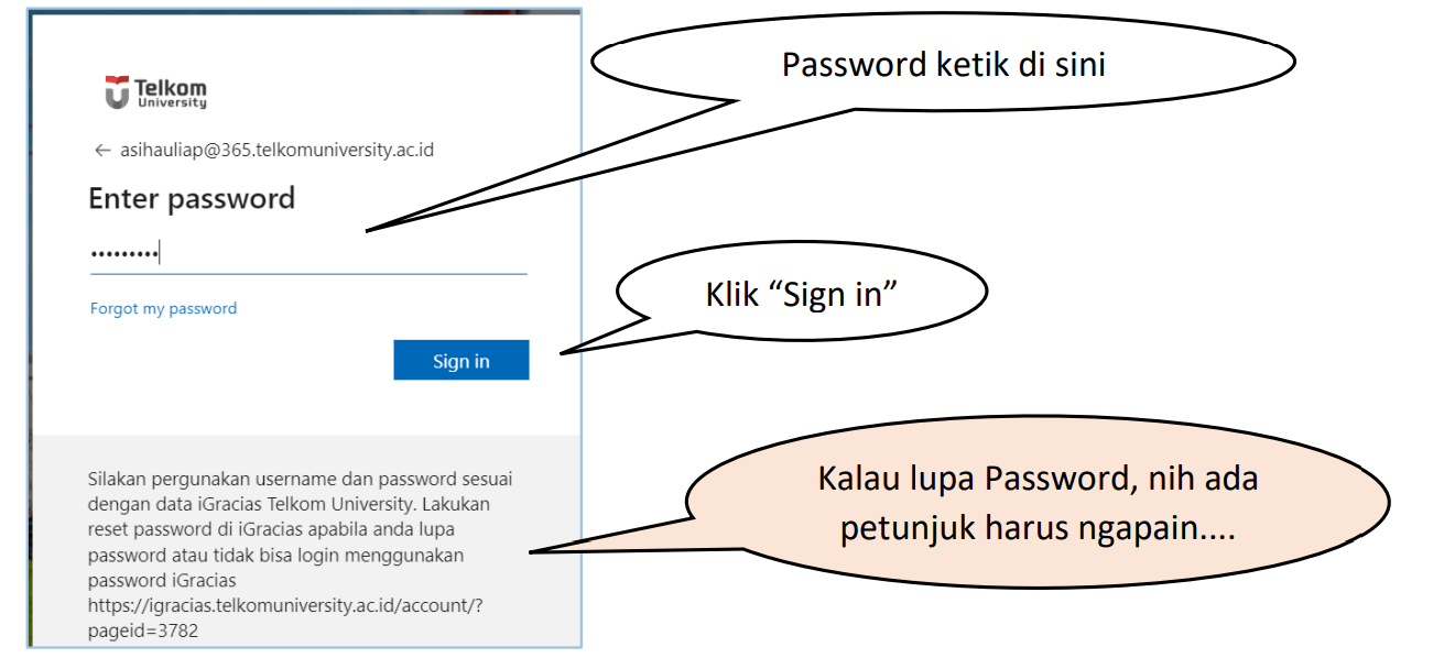 3. Apa akun SSO Office 365 saya?Misalkan Anda sebelumnya mengetahui bahwa akun SSO Anda adalah "asihauliap@telkomuniversity.ac.id", maka akun SSO Office 365 Anda adalah "asihauliap@365.telkomuniversity.ac.id". Sederhana kan?