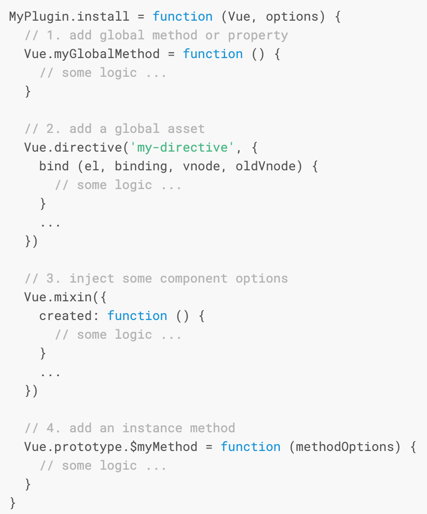 - Add some Vue instance methods by attaching them to Vue.prototype.