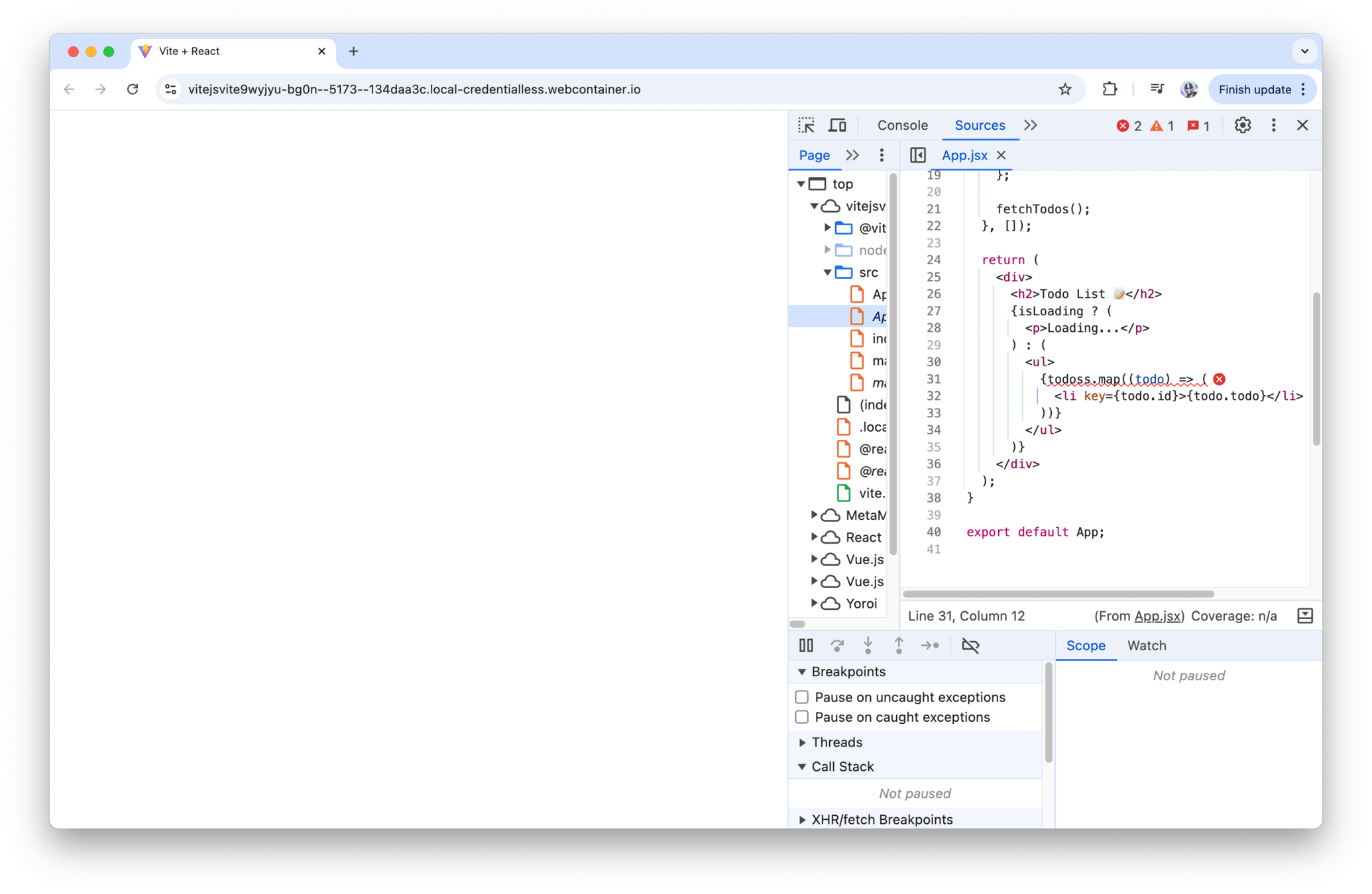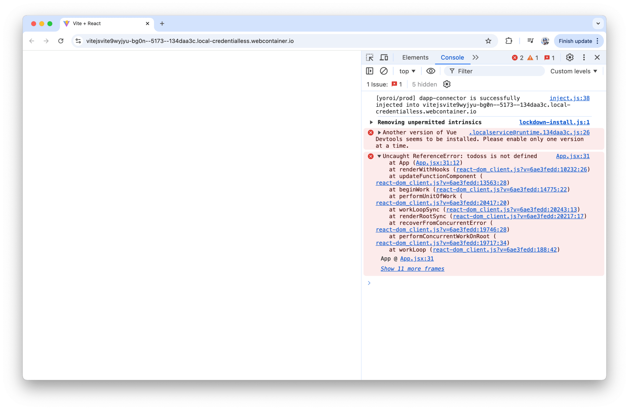 My regular debugging steps when errors occur — check network request logs / JavaScript Console / React DevTools