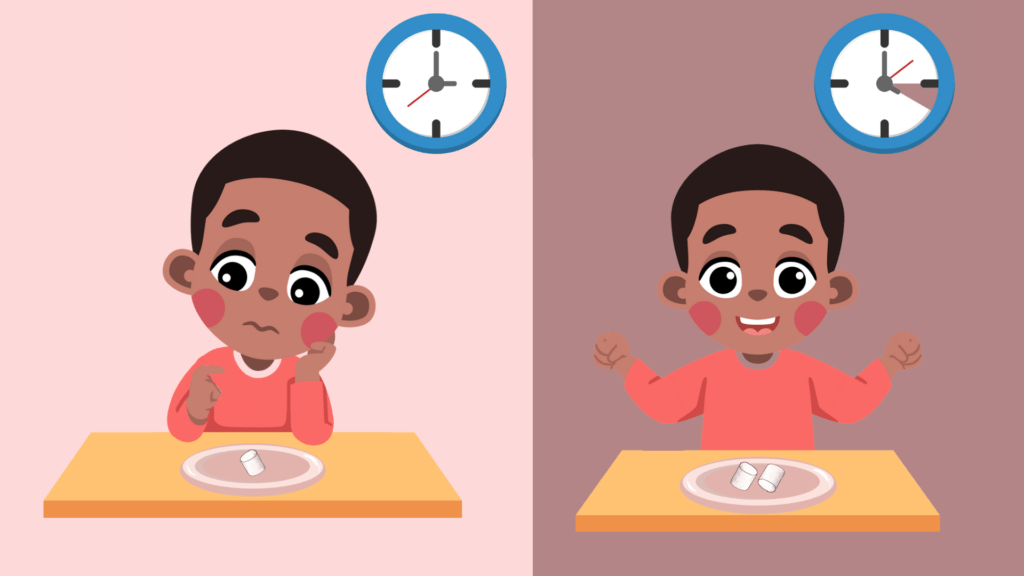 Eat now = small reward now. Wait = bigger reward later