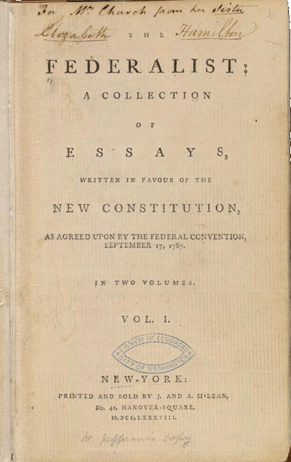 Alexander Hamilton Federalist 51 (online National Archives) (short excerpt)