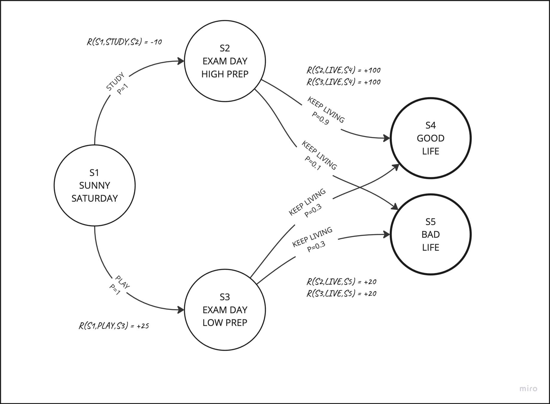 Each state has a "quality" Q based on expected value of rest-of-your-life paths that start there