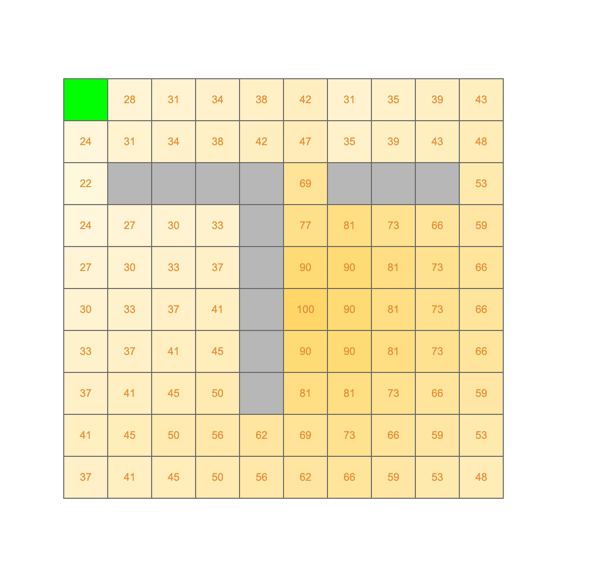 | 18 | 12 | 24 | X | 17 |