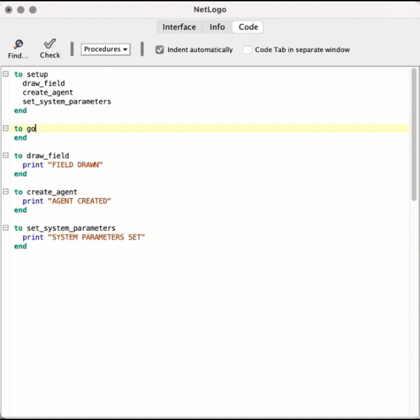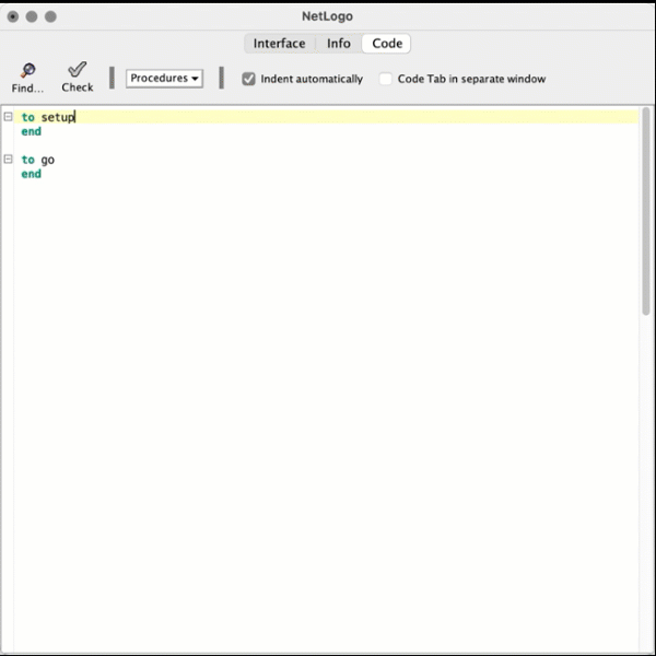 globals [target err]First line of NetLogo code