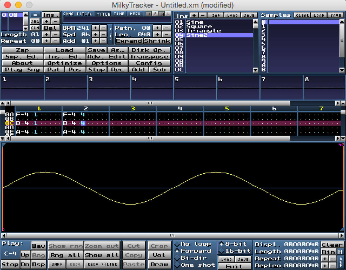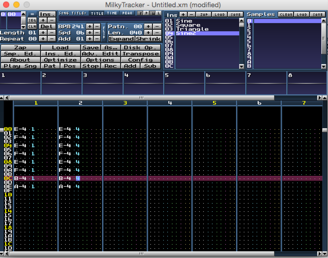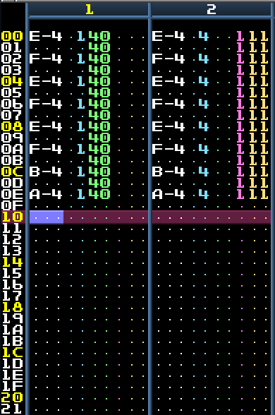 Note-Octave|Instrument #|Volume|Effect, Param, Param