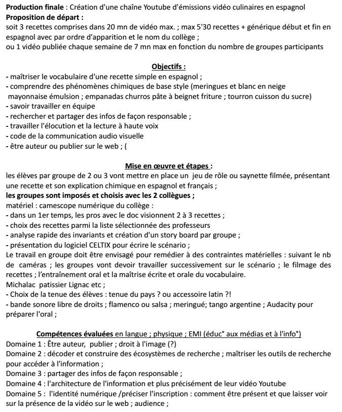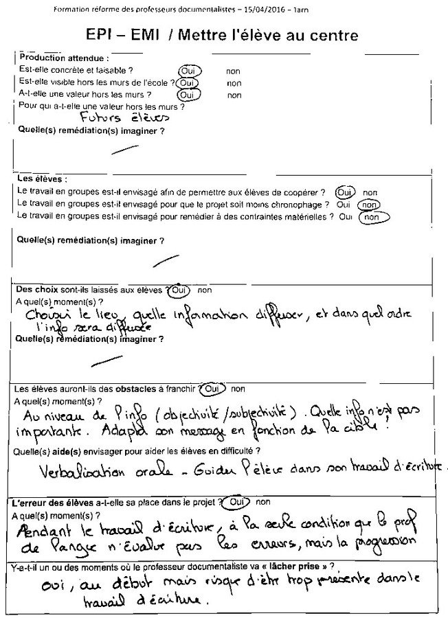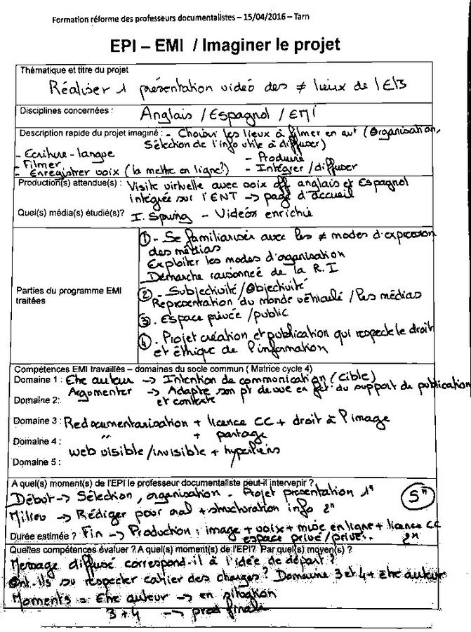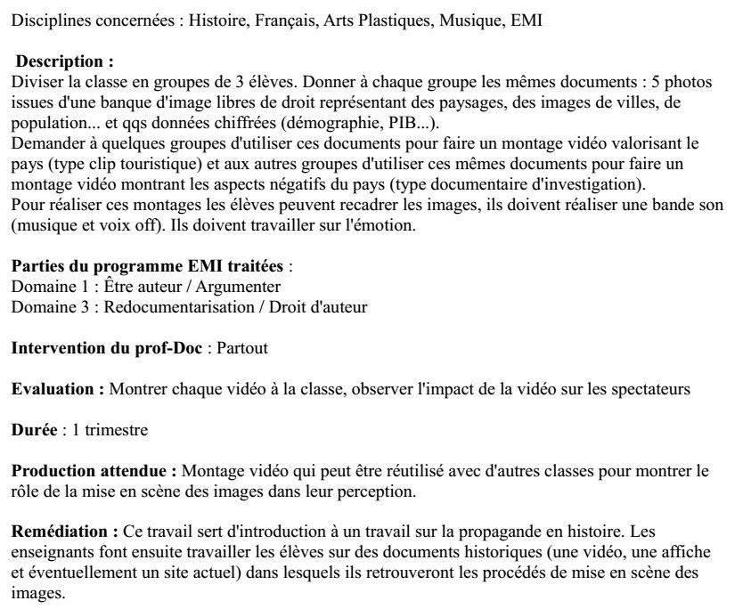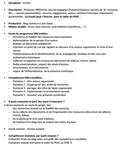 disciplines concernées : Français, techno, histoire/géo, EMI