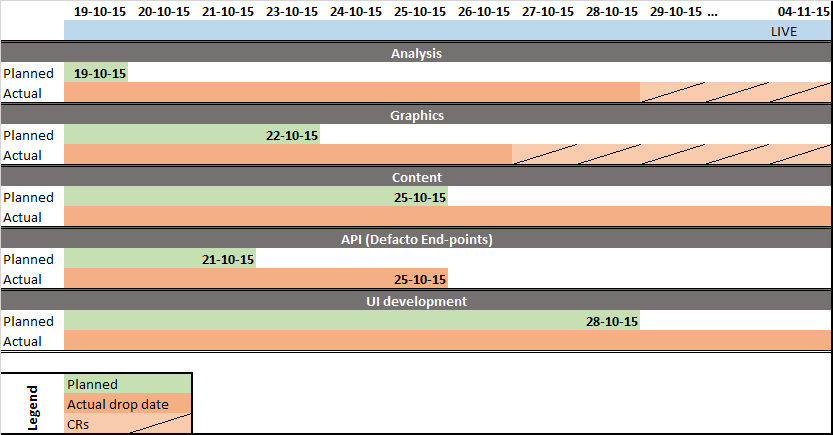 Content still not final at the morning (e.g. questionnaire images) Talking with the Gil (SEO guy) for the first time at ~13 (GA requirements were not exist till that moment) Went live with the app at ~19:30