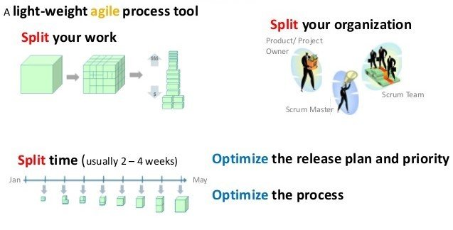 - Sprints - 3 weeks: planning, demos, retros