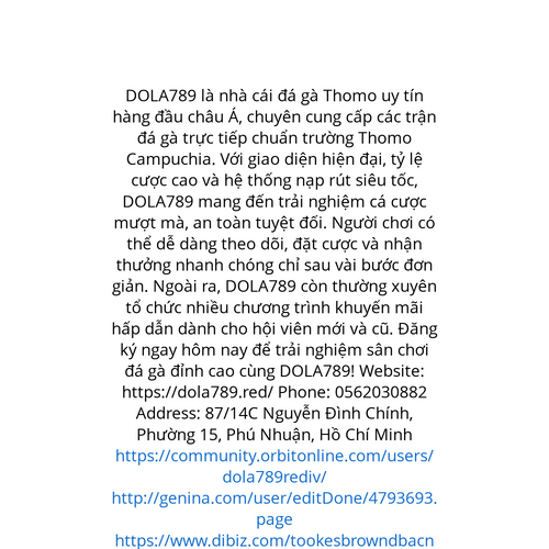 Website: https://dola789.red/ DOLA789 là nhà cái đá gà Thomo uy tín hàng đầu châu Á, chuyên cung cấp các trận đá gà trực tiếp chuẩn trường Thomo Campuchia. Với giao diện hiện đại, tỷ lệ cược cao và hệ thống nạp rút siêu tốc, DOLA789 mang đến trải ngh
