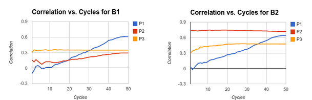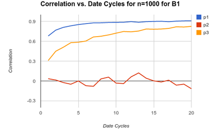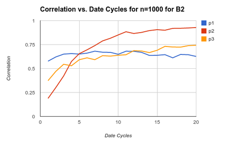 - Both B1 and B2 attain reasonably high correlation after 5 dating cycles!