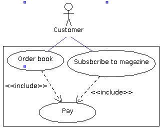 To represent that a small use case is used in a larger use case, we denote an <<include>> relationship.