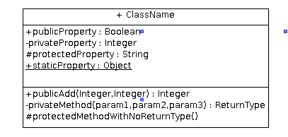 Classes which implement the interface are linked using a dashed full arrow. Again, methods defined on the interface are not repeated.