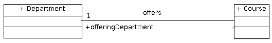 Associations can also be unidirectional. If the Department does not have instance variables for the courses it offers, then we would have this: