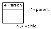 Sometimes a class has an instance variable of the same type. We represent this by making the association line a loop.