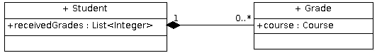 In this example, a Student has a list of grades. However it does not make sense for a Grade object to be independent - whose grade is it?!