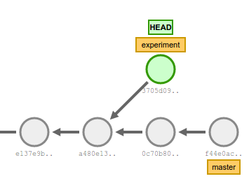 - We create a branch called experiment. Its starting point will be a480e13.