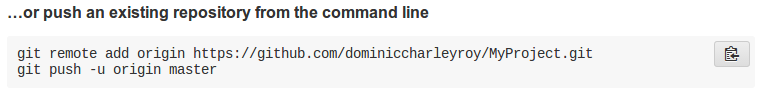 As our repository already exists locally, let's follow the GitHub instructions for import it. Ignore the git push command for now.