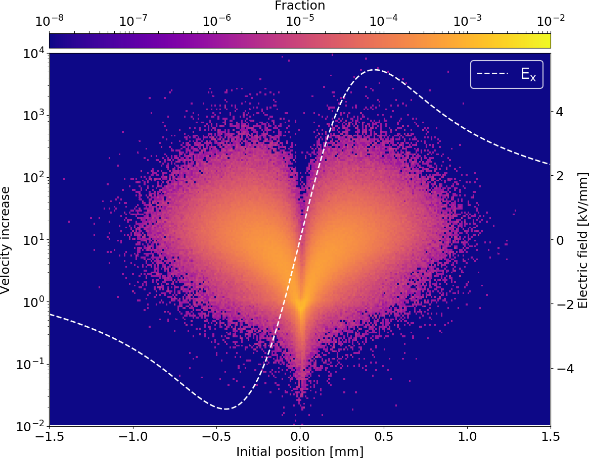 Due to space-charge interaction only large field strengths are effective though