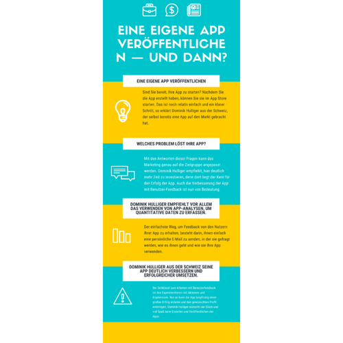 Dominik Hulliger aus. In diesem Guide erklärt er nun die wichtigsten Schritte zum Erstellen einer App. Jede App beginnt mit einer Idee. Dominik Hulliger aus der Schweiz rät, Ihre App-Idee mit Stift und Papier zu zeichnen. Ziel ist es, die Idee greifbar zu machen. Sie definieren, wie Ihre App funktioniert und welche Funktionen sie bietet, bevor Sie mit der Entwicklung der App beginnen.