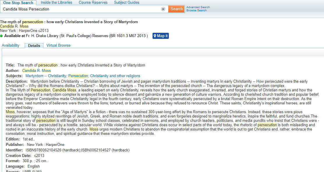 Moss argues that we have to re-evaluate the standard understanding of the Christian persecution (2013,p.162). While Christians may have been maltreated,this does not mean they were technically persecuted (Moss,2013,p.162).