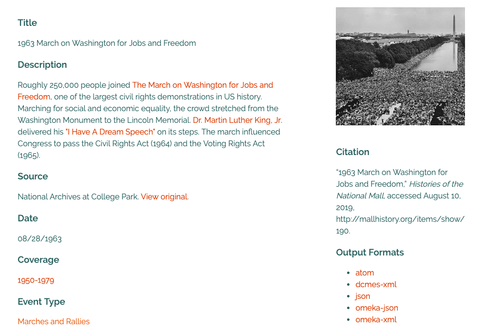 5. Screenshot taken by Dom Taylor from "1963 March on Washington for Jobs and Freedom,” Histories of the National Mall, accessed August 10, 2019, http://mallhistory.org/items/show/190.