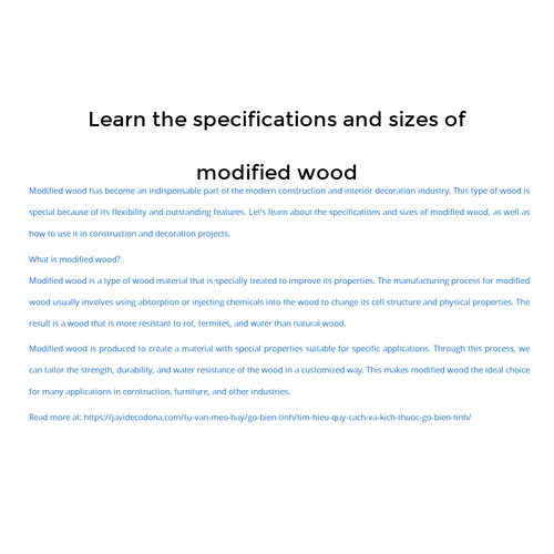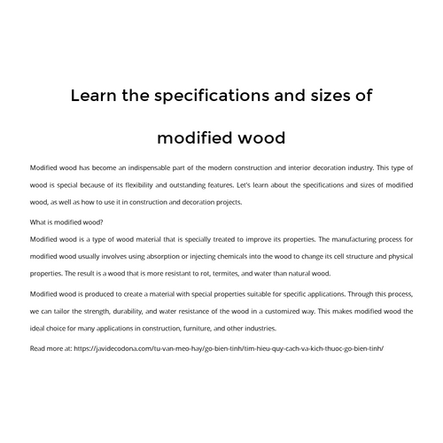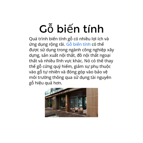 Gỗ biến tính là quá trình xử lý gỗ thông qua sự áp dụng các phương pháp vật lý, hóa học hoặc kết hợp cả hai để cải thiện tính chất và hiệu suất của nó.