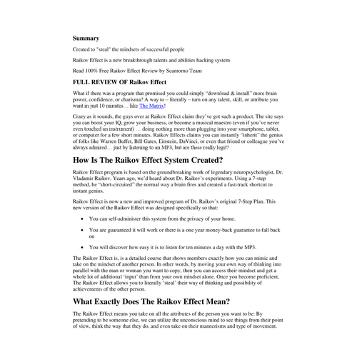The Raikov Effect Review - What if there was a program that promised you could simply “download & install” more brain power, confidence, or charisma? A way to – literally – turn on any talent, skill, or attribute you want in just 10 minutes… like The Matrix!: Full The Raikov Effect Review here! at http://scamorno.com/Raikov-Effect-Review/?id=slides