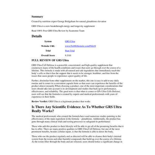 http://scamorno.com/GRS-Ultra-Review/?id=slides GRS Ultra Cell Defense is a powerful, concentrated, and high-quality supplement that counteracts many of the health conditions and issues that users go through over the course of a lifetime. This formula is made with all-natural and safe ingredients that immediately reach the body’s cells so that it has the support that it needs to be stronger, healthier, and free from the issues that cause people to experience a poor quality of life. Further, dissimilar from other supplements on the market, this one is easy to add to any daily routine and it comes in a convenient capsule form so that users can experience the benefits of the product almost instantly. Full GRS Ultra Review here! at http://scamorno.com/GRS-Ultra-Review/?id=slides https://www.youtube.com/watch?v=Q5aR4qqGuwg