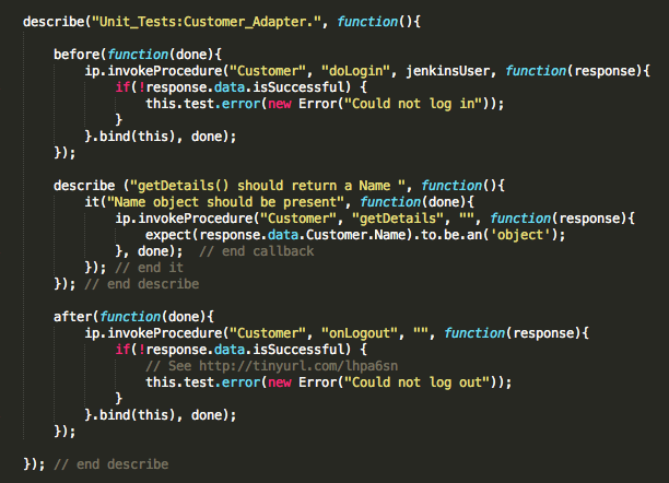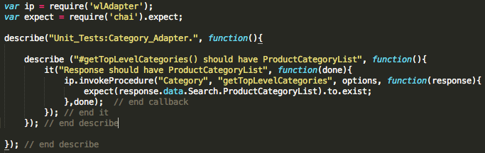 var invokeProcedure = function (adapter, procedure, parameters, callback, done){ // prepare the URL var payload = _invoke(URL)callback(payload) // passed from script calling this functiondone(); // Mocha callback for async completeness} var _invoke = function (address) { request.get({url:address, json:true}, function(error, response, data){ // do something interesting? return {error: error, response: response, data: payload}; }) }