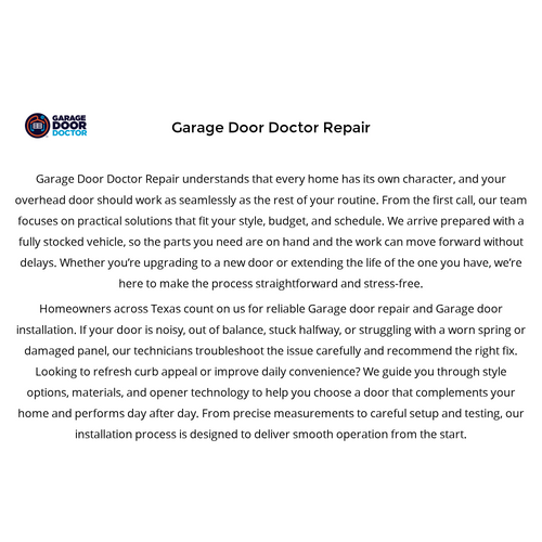 Contact us: Address: 6166 Imperial Loop Dr Suite 20, College Station, TX, 77845 Phone: 281-393-7078 Hours: Mon to Sun - All Day Email: citations@garagedoctor.biz