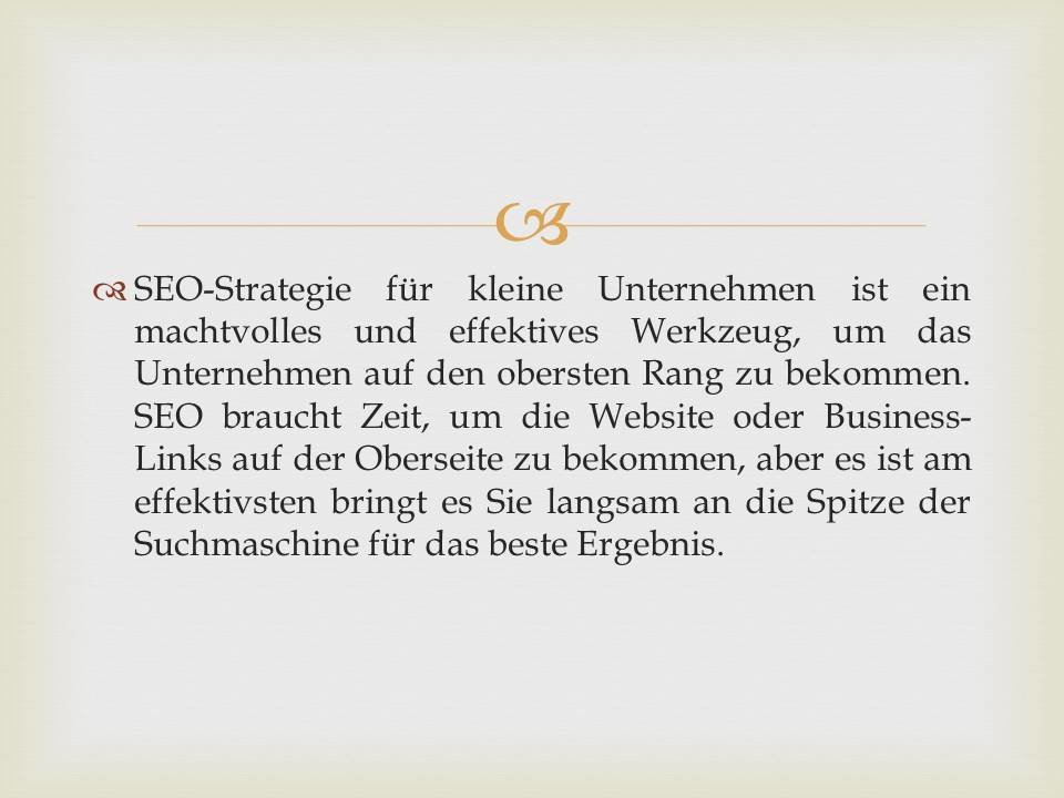 Seo-Strategie für kleine Unternehmen ist Power Full und Effekt-Tool, um das Unternehmen auf den obersten Rang zu bekommen.