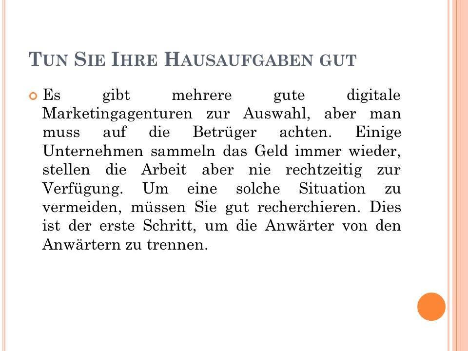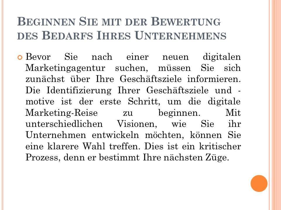 Um Ihnen zu helfen, die beste digitale Marketingagentur zu finden, möchten Sie die Schlüsselschritte verstehen, um sicherzustellen, dass Sie die richtige Passform erhalten.