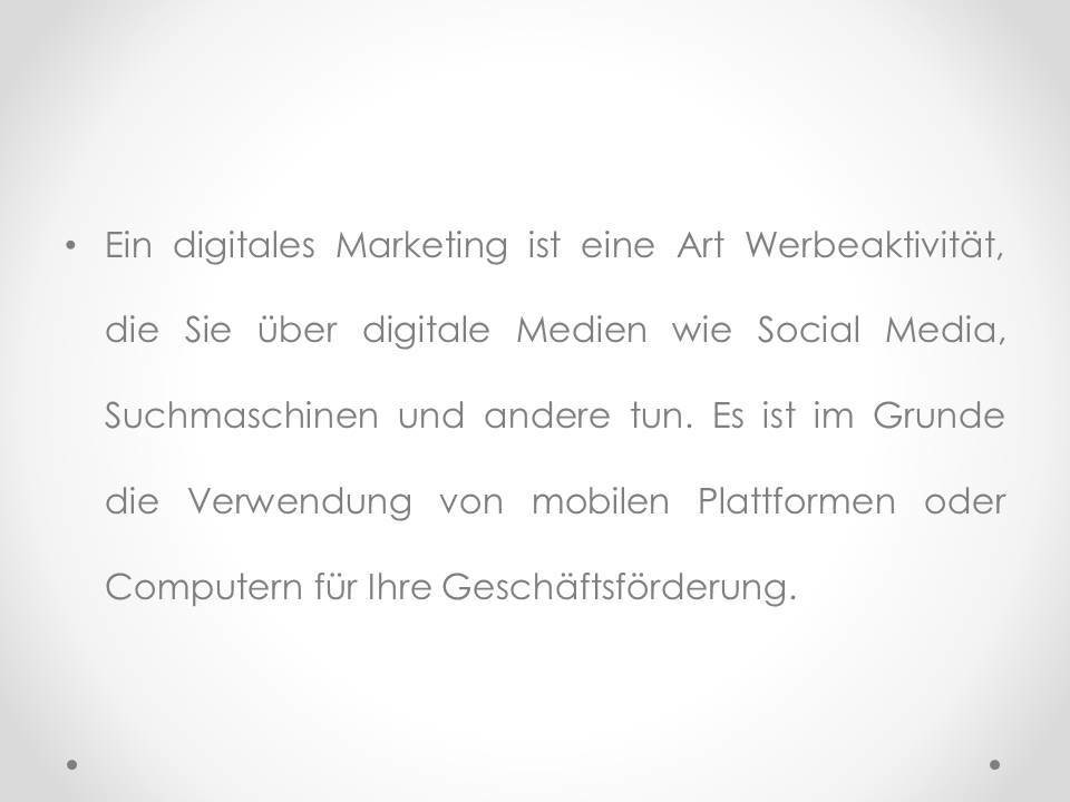 Ein digitales Marketing ist eine Art Werbeaktivität, die Sie über digitale Medien wie Social Media, Suchmaschinen und andere tun.