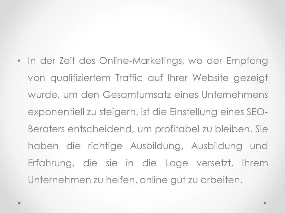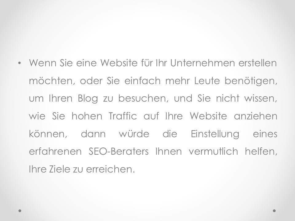 Wenn Sie eine Website für Ihr Unternehmen erstellen möchten, oder Sie einfach mehr Leute benötigen, um Ihren Blog zu besuchen, und Sie nicht wissen, wie Sie hohen Traffic auf Ihre Website anziehen können, dann würde die Einstellung eines erfahrenen SEO-Beraters Ihnen vermutlich helfen, Ihre Ziele zu erreichen.