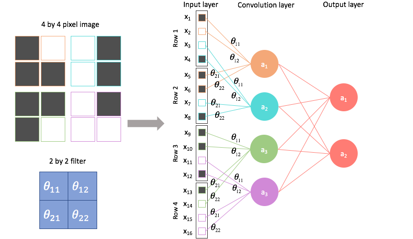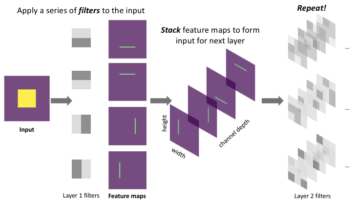 Exemple de 96 filtres appris par des premières couches d'un CNN