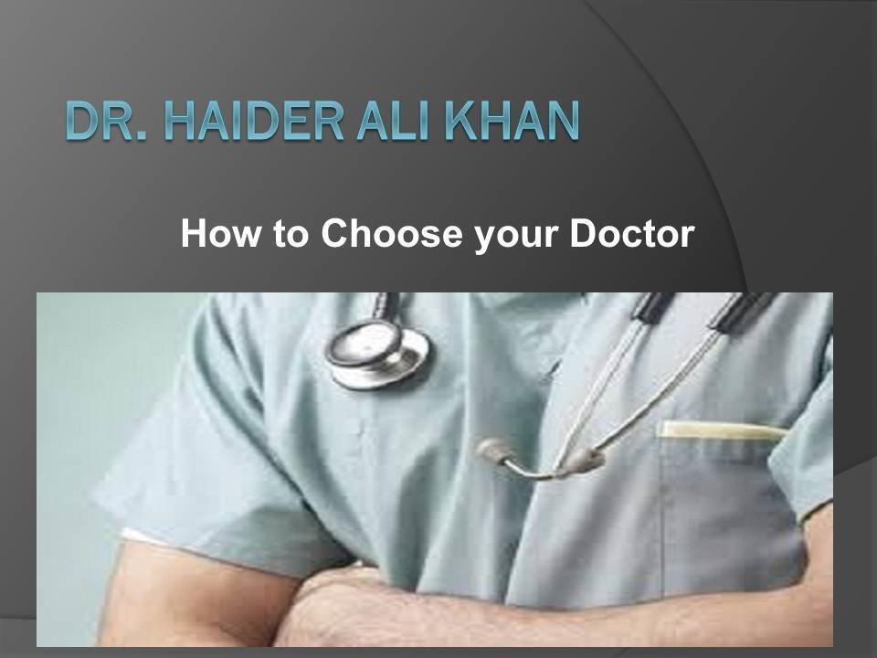 Dr. Haider Ali Khan is one of the best Doctor of Medicine in the United States. In this ppt, you will get to know how to Choose your Doctor. https://medium.com/@drhaideralikhanmd/the-life-and-work-of-dr-haider-ali-khan-md-b4159bd8be83