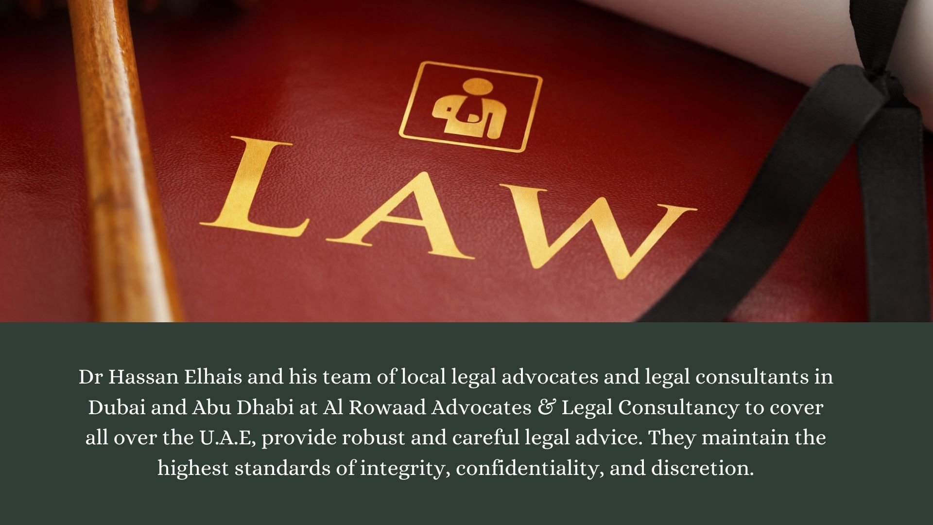 Dr Hassan Elhais and his team of local legal advocates and legal consultants in Dubai and Abu Dhabi at Al Rowaad Advocates & Legal Consultancy to cover all over the U.A.E, provide robust and careful legal advice. They maintain the highest standards of integrity, confidentiality, and discretion.